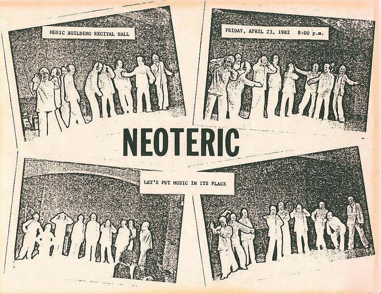 Revision as of 22:46, 5 February 2012 by Gongmaster (talk | contribs) (Poster, Let's Put Music in Its Place Series; Plain paper copy; April, 1982; © 1982 the Neoteric Ensemble; Collection of Tim Blickhan; Used with permission)